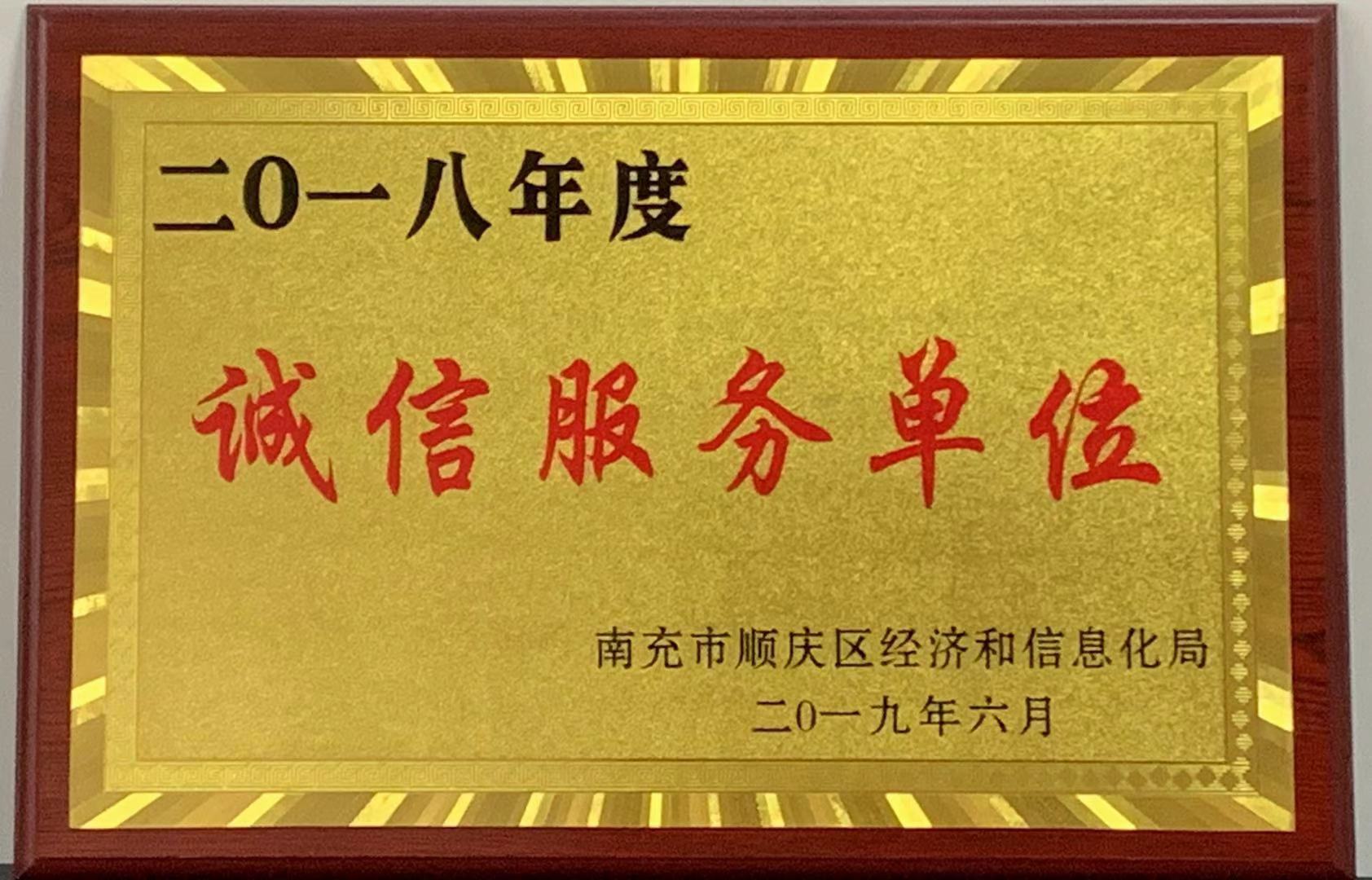 我公司獲得2018年度誠(chéng)信服務(wù)單位