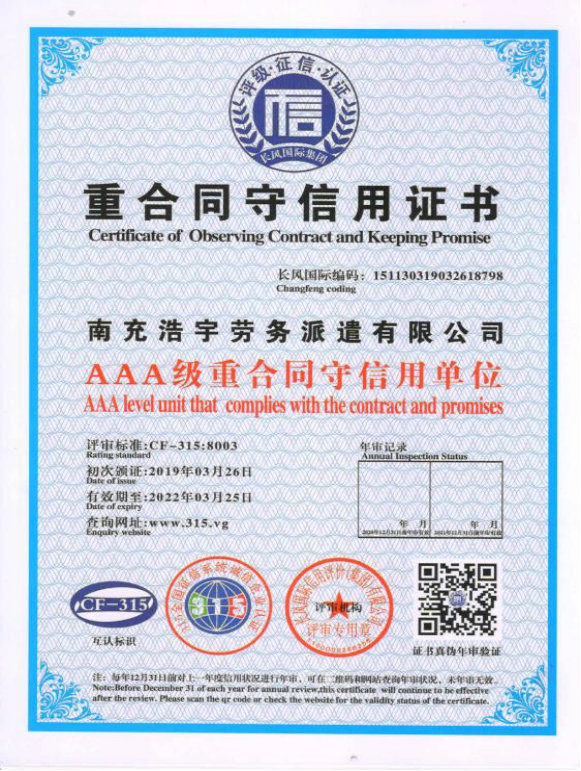 我公司榮獲重合同守信用證書AAA級(jí)認(rèn)證